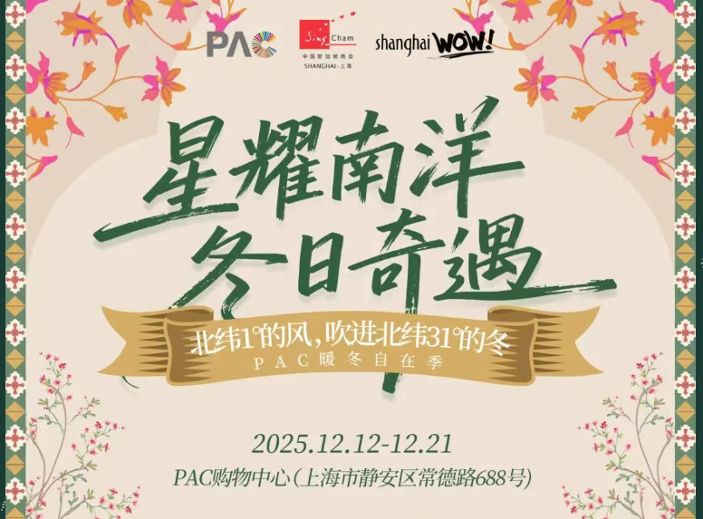 中国新加坡商会·上海携手PAC购物中心热情邀约您加入“星耀南洋·冬日奇遇”——一场融合南洋风情与冬日庆典的沉浸式市集,将于2025年12月12日至12月21日,在上海市·PAC购物中心(静安区常德路688号)温情开幕。Social Off